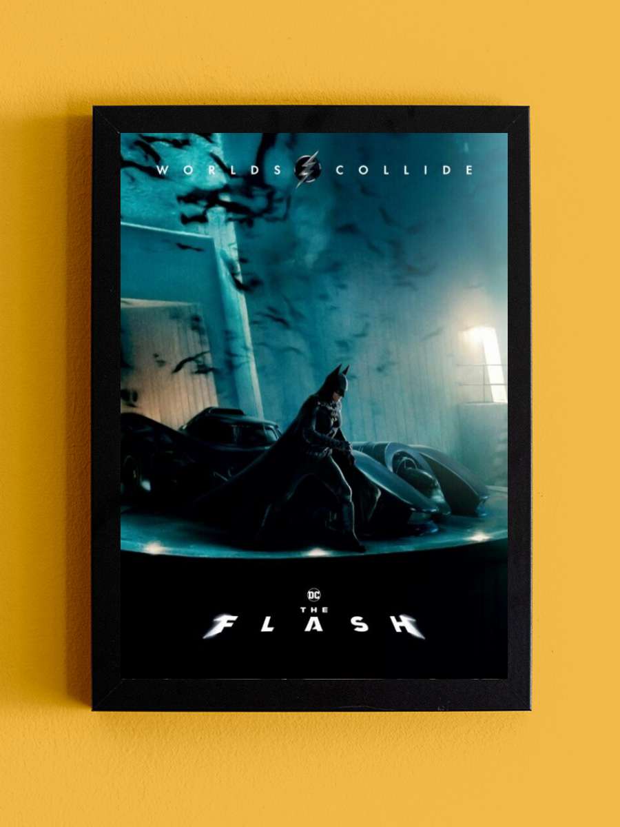 The Flash - Batman & Batmobile Film Poster Tablo Siyah Çerçeveli Yüksek Kalite Film Duvar Tablo