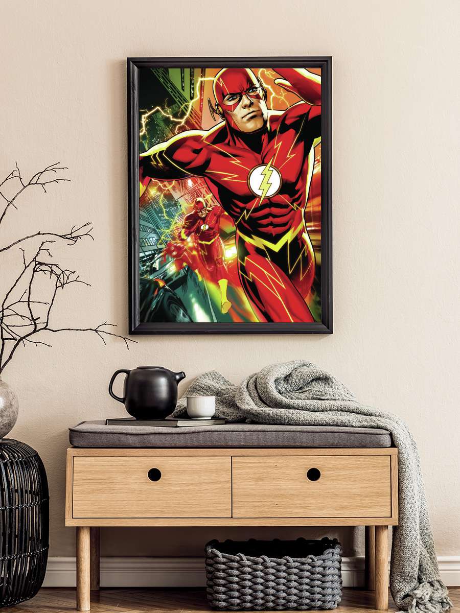 The Flash - Multiple Run Film Poster Tablo Siyah Çerçeveli Yüksek Kalite Film Duvar Tablo