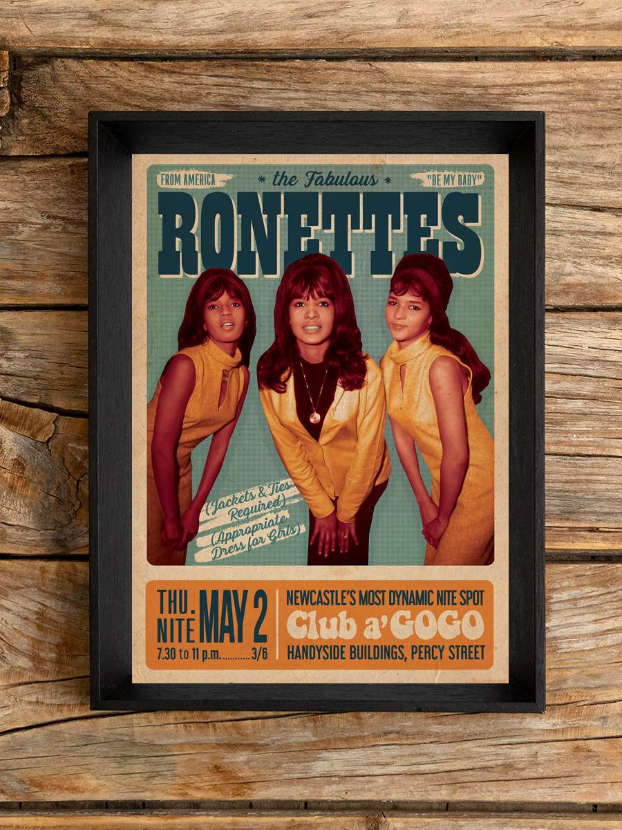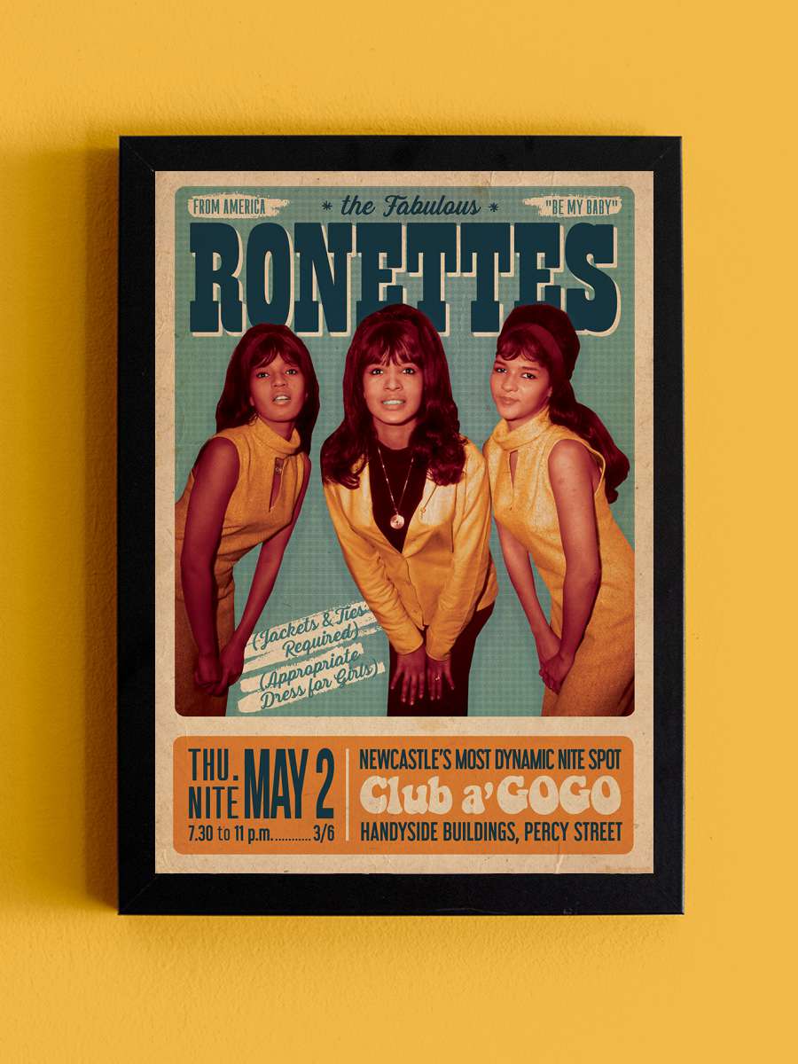 The Ronettes - Newcastle Müzik Poster Tablo Siyah Çerçeveli Yüksek Kalite Müzik Duvar Tablo