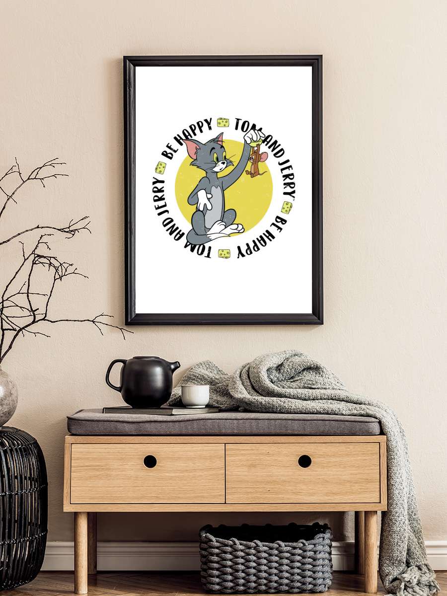 Tom& Jerry - Be Happy Çocuk Odası Tablo Siyah Çerçeveli Poster Çocuk Bebek Odası Duvar Tablo