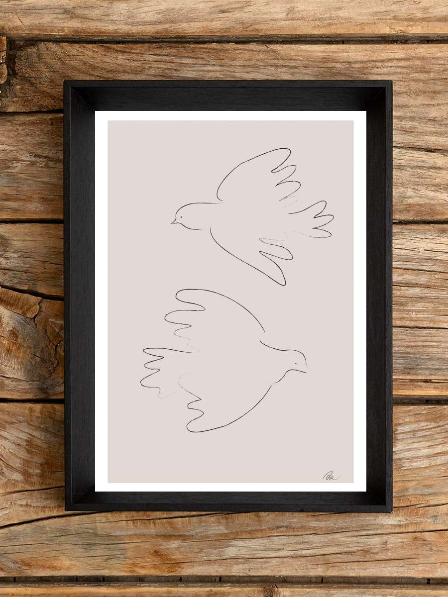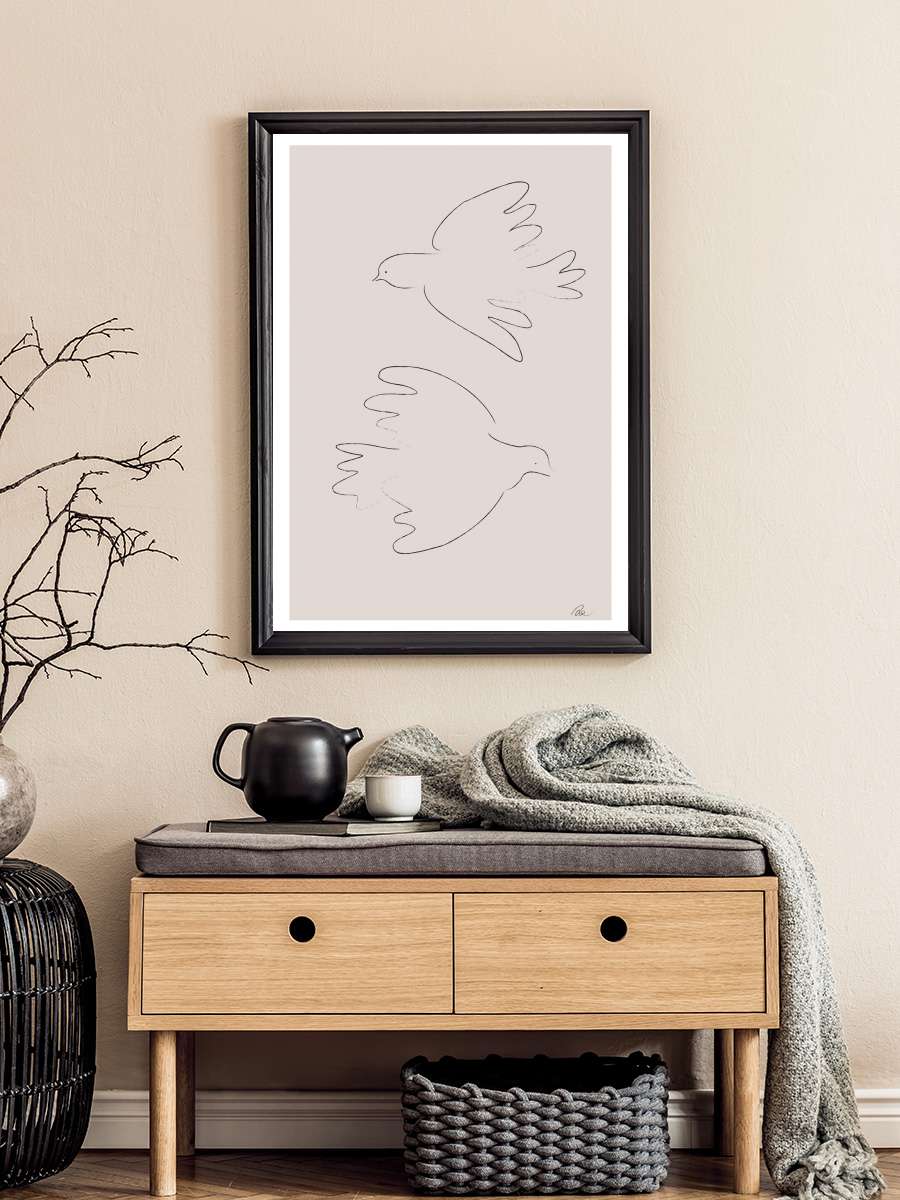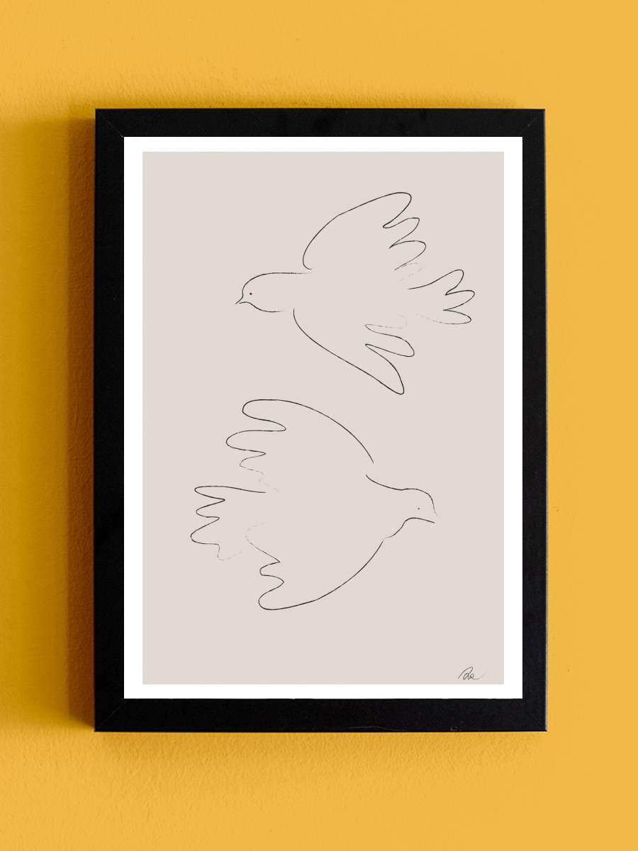 Two Doves Sanatsal Modern Tablo Siyah Çerçeveli Poster Modern Duvar Tablo