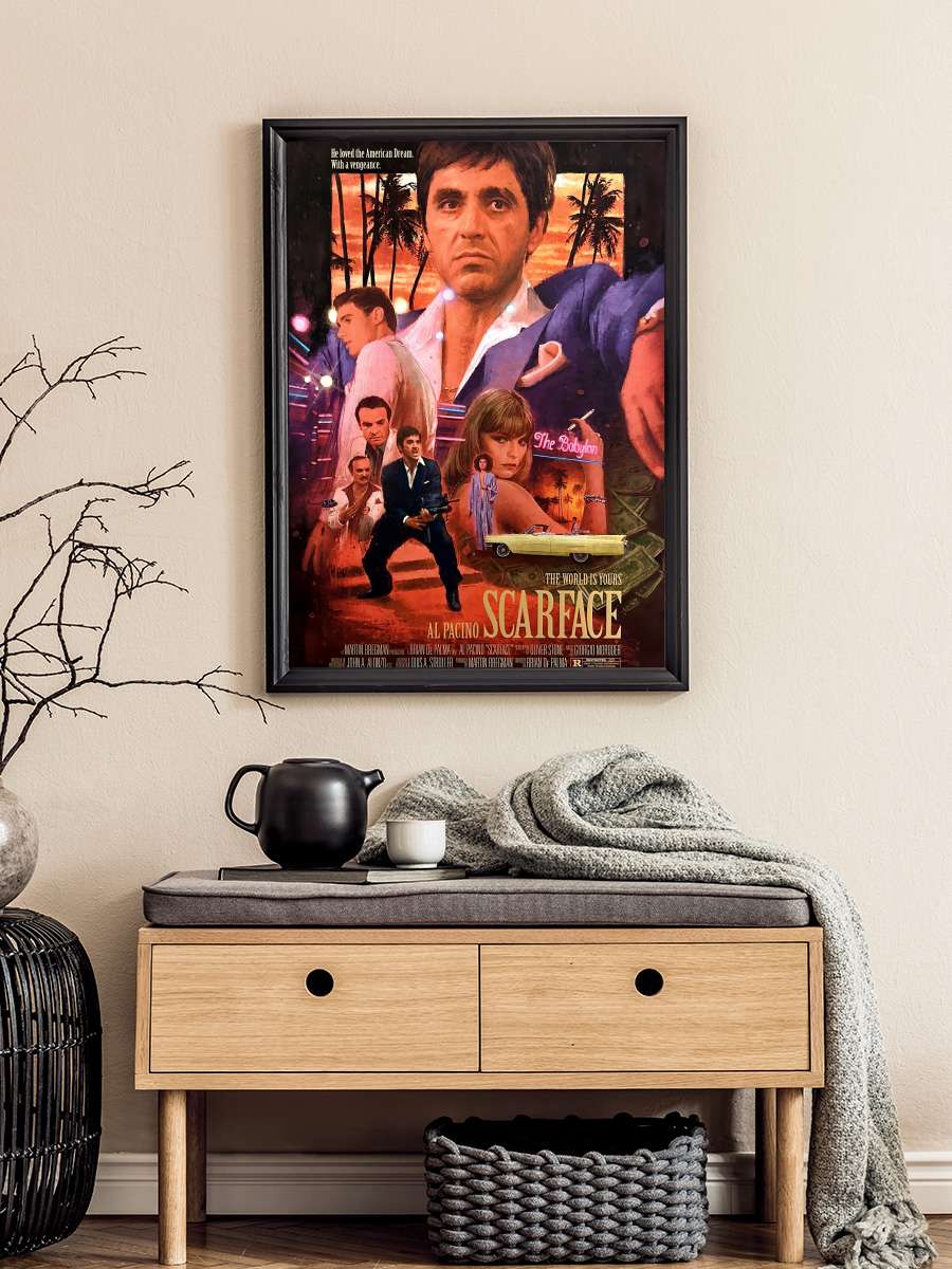 Yaralı Yüz - Scarface Film Tablo Siyah Çerçeveli Film Poster Afiş Tablo